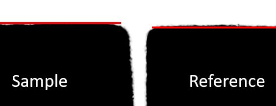 在光學(xué)膨脹儀中,樣品在測(cè)量過(guò)程中始終與參考物進(jìn)行比較。參考物通常是一種已知的、具有確定膨脹特性的材料,用于實(shí)時(shí)校正,以克服在加熱過(guò)程中由于大氣環(huán)境影響而產(chǎn)生的光學(xué)波動(dòng)。視場(chǎng)面積為 3.3 x 2.8 mm2,通常聚焦在樣品的上邊緣。