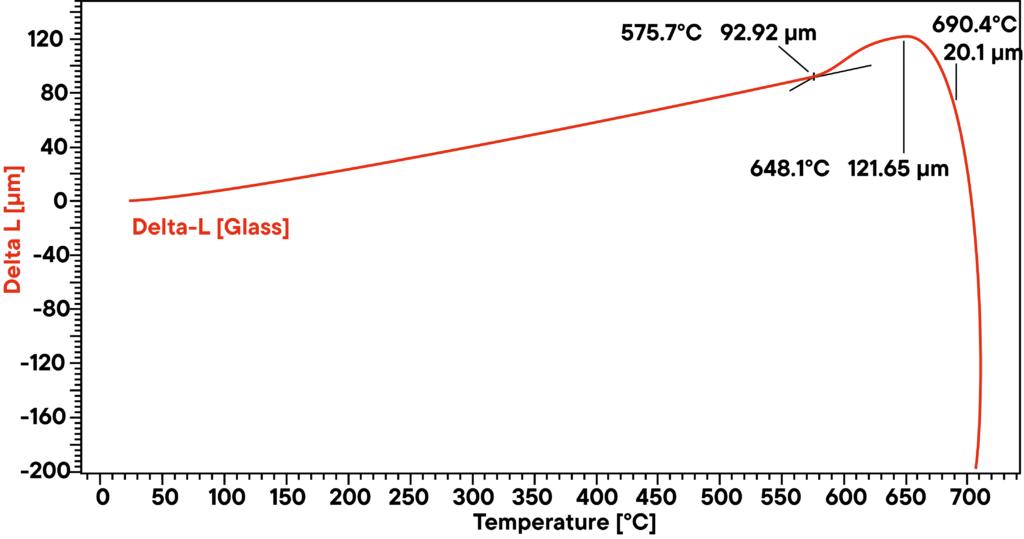 熱膨脹法是一種通過測量玻璃樣品在加熱過程中膨脹的變化量來確定其軟化點(diǎn)的方法。在微弱負(fù)載力下,將制備好的待測樣品固定在熱膨脹儀上,然后以一定的升溫速率加熱玻璃樣品并測量其膨脹量隨溫度變化的曲線。當(dāng)膨脹量達(dá)到最大值并開始出現(xiàn)收縮時,即可確定玻璃的軟化點(diǎn)。