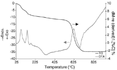 圖1 脫水篩渣的同步DTA-TGA曲線