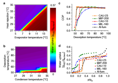 高效利用能源進(jìn)行制冷應(yīng)用是一個(gè)非常重要并且具有挑戰(zhàn)性的研究方向。用水作為冷卻劑的超低溫驅(qū)動(dòng)吸附式制冷機(jī)(ADCs)是一種環(huán)保的選擇。開(kāi)發(fā)了新型高效材料,吸附式制冷機(jī)正在重新成為尖端設(shè)備。這些材料使用了以前無(wú)法實(shí)現(xiàn)的低驅(qū)動(dòng)溫度,并保持了高制冷輸出,同時(shí)僅使用水作為制冷劑。其中,金屬有機(jī)物結(jié)構(gòu)(MOF)這一類(lèi)吸附劑的吸水性能對(duì)這一應(yīng)用很有效。但在實(shí)際條件下長(zhǎng)期使用時(shí),擁有高穩(wěn)定性的,只有少數(shù)的MOF。