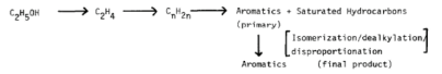 研究了沸石負載過渡金屬催化乙醇轉化為芳香族化合物的反應。以Zn/沸石、Cu/沸石和Co/沸石為過渡金屬,采用浸漬法制備了催化劑。采用X射線衍射(XRD)、比表面積分析(BET和BJH)等方法,用重量法、FTIR光譜和熱重分析(TGA-Linseis STA PT 1600)對催化劑進行了表征。在固定床反應器中,在350℃和常壓下進行了乙醇與芳香族化合物的反應。Zn/沸石催化劑的芳烴含量高,約為97.39%(v/v),對乙苯的選擇性高。