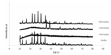 圖2:不同過渡金屬在負載型沸石催化劑上的X射線衍射