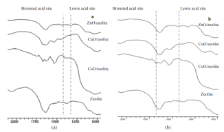 圖4:金屬/沸石催化劑上吸附(a)氨和(b)吡啶的紅外光譜