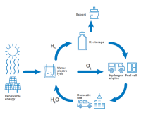 由于此循環(huán)中的每個(gè)步驟都有多種方法, 因此建立了一些研究概念來彌合差距,并獲得必要的、尚未完全開發(fā)的技術(shù)。 弗勞恩霍夫研究協(xié)會為德國開發(fā)并發(fā)布了一份氫路線圖,列出了所有研究領(lǐng)域及主題。