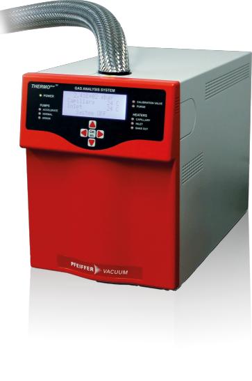 樣品的逸出氣體通過一個(gè)非常小的孔直接被輸送到四極桿質(zhì)譜分析儀(QMS)中。這個(gè)小孔(或節(jié)流孔)將壓力容器內(nèi)的壓力降低到四極桿質(zhì)譜儀允許的輸入壓力。由于這個(gè)小孔位于加熱爐的高溫區(qū)域內(nèi),逸出氣體不會發(fā)生冷凝現(xiàn)象。又因?yàn)樵谛】缀退臉O桿質(zhì)譜儀的離子源之間存在大約 1×10?? mbar 的真空環(huán)境,所以在那里也不可能發(fā)生冷凝。