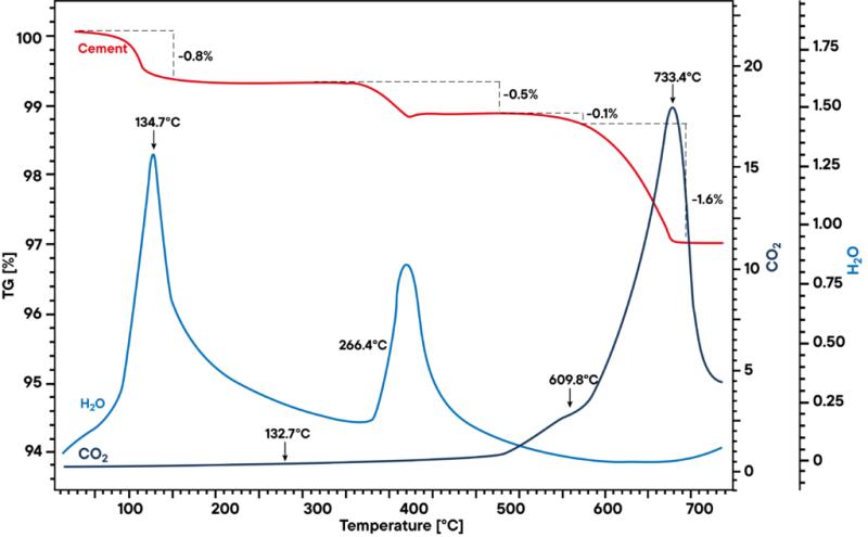 使用熱重分析和傅里葉變換紅外光譜法進(jìn)行分析,通過熱分析可以識(shí)別并定量測(cè)定水泥樣品中的添加劑。測(cè)量結(jié)果展示了對(duì)一個(gè)水泥樣品的熱分析。