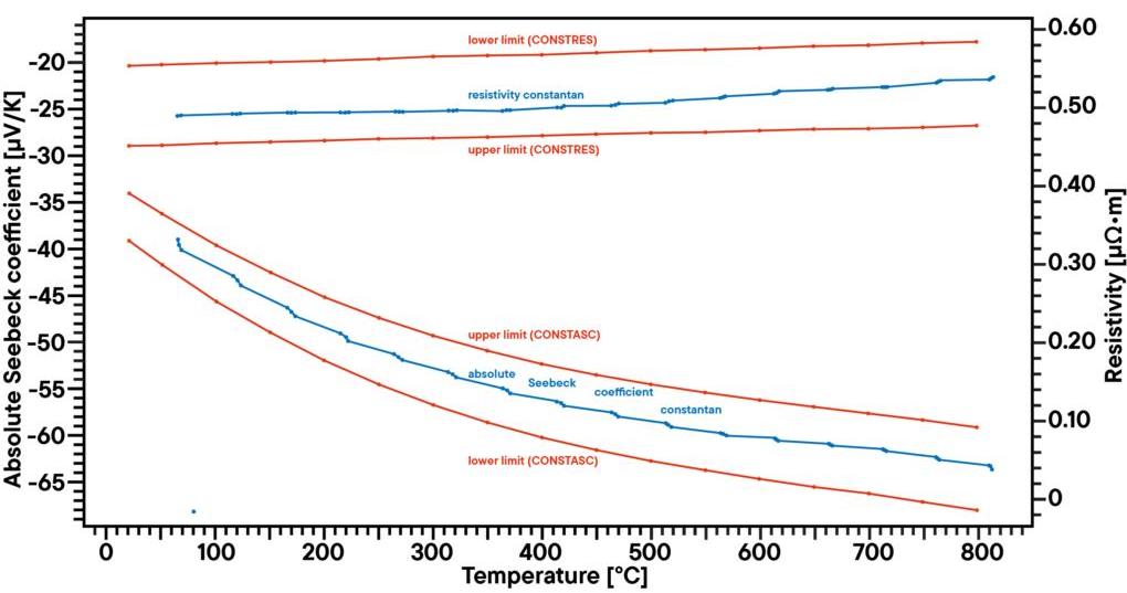 與美國國家標(biāo)準(zhǔn)與技術(shù)研究院(NIST)提供的碲化鉍(Bi2Te3)標(biāo)準(zhǔn)樣品 (SRM 3451)TM 不同,后者只能在最高 390 K 的有限溫度范圍內(nèi)使用,而我們選用的標(biāo)準(zhǔn)樣品康銅適用于高達(dá) 800 °C 的測量環(huán)境。
