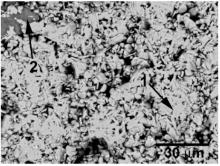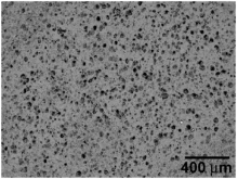 圖3 0.03 Cr取代樣品拋光段的掃描電鏡分析。黑點(diǎn)表示塊狀物質(zhì)的孔隙度