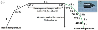 圖3 (a)結晶過程的輪廓曲線和(b)生長Bi2Se3晶體的錠。