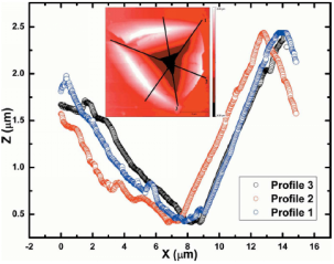 圖12 樣品上壓痕的輪廓。插圖顯示了壓痕機壓痕的形貌