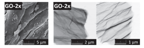 圖1:GO-2x的SEM圖像(左)和TEM圖像(右)
