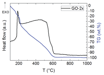 氧化石墨烯是一種眾所周知的材料,通常用作合成石墨烯及其衍生物和其他石墨烯基材料的前驅(qū)體。我們的高氧化石墨烯氧化物是根據(jù)改進(jìn)的圖爾的方法,通過兩步氧化純石墨和隨后的氧化石墨制備的。采用元素分析法、X射線光電子能譜法和能譜法對樣品中的氧含量進(jìn)行了分析。采用拉曼光譜、掃描電鏡、透射電鏡和X射線粉末衍射等手段對其結(jié)構(gòu)、形貌和化學(xué)組成進(jìn)行了研究。采用同步熱分析(Linseis STA PT1600)和同步熱分析與質(zhì)譜聯(lián)用的方法研究了其在大氣中的熱穩(wěn)定性。