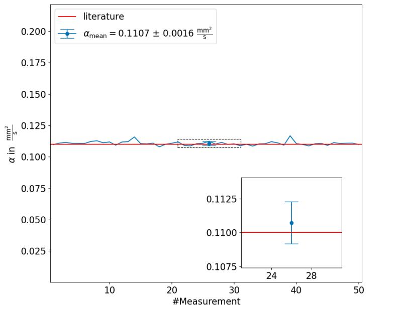 藍(lán)寶石屬于陶瓷材料,熱擴(kuò)散系數(shù)參考值為 13.3 mm2/s 。我們的測(cè)量結(jié)果高度精確地證實(shí)了這一數(shù)值。由于藍(lán)寶石具有出色的熱性能和光學(xué)性能,因此常用于微電子領(lǐng)域的激光技術(shù)和 LED 等。