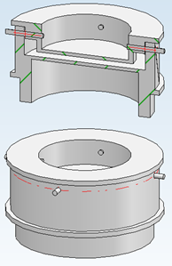 如下圖展示了所構(gòu)建的樣品支架的設(shè)計(jì)。該支架由石墨制成,因?yàn)榧词乖谳^高溫度下,石墨也能承受鹽的腐蝕性。支架的底部和頂部以一種特定方式連接,使得在支架中間部分能確定樣品的厚度為一定距離。這種設(shè)計(jì)還在側(cè)面留出了額外空間,以便材料在較高溫度下能夠膨脹。此外,頂部設(shè)有孔洞,以便材料產(chǎn)生的任何氣體能夠逸出。這一點(diǎn)至關(guān)重要,因?yàn)槿芙獾臍怏w可能會(huì)形成氣泡,從而導(dǎo)致材料不均勻或與支架接觸不良。